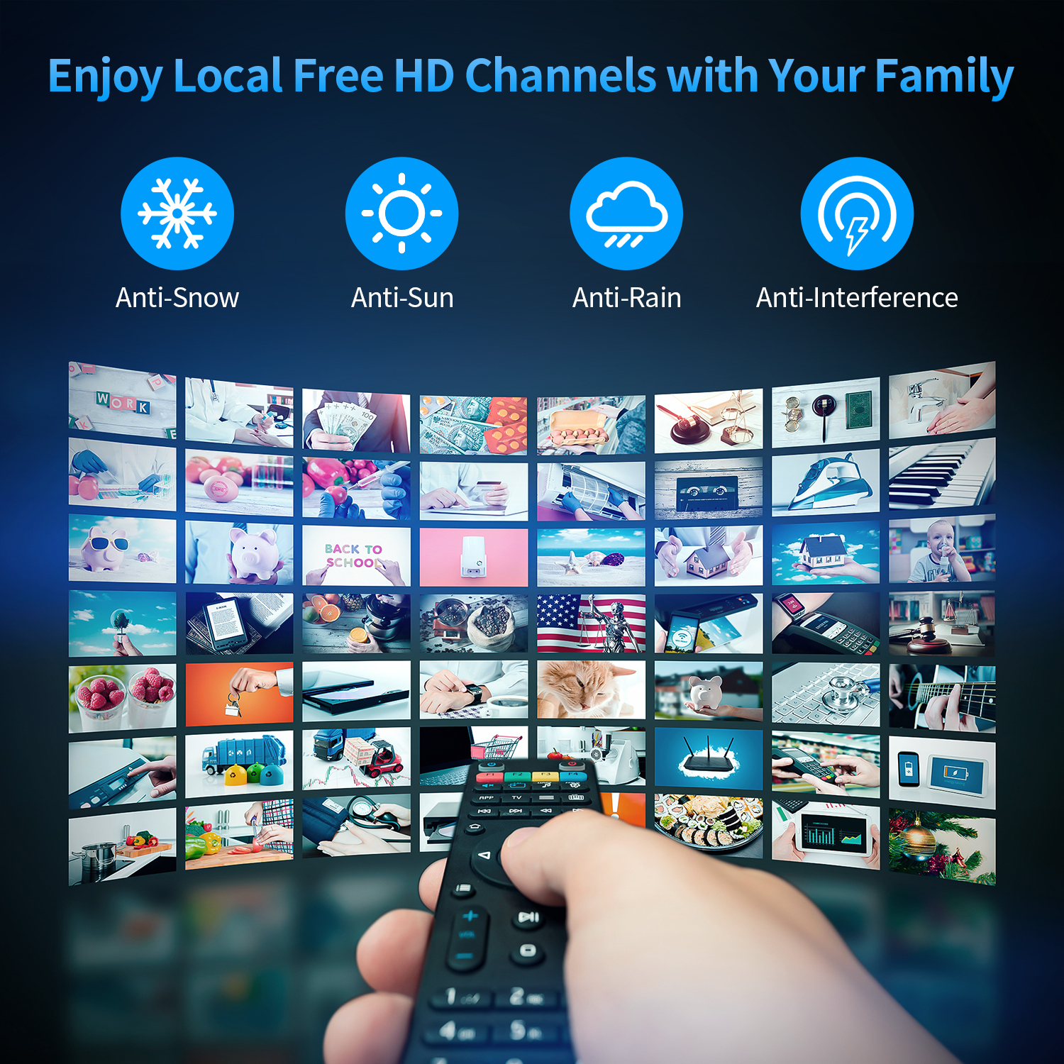 - ✅ FULL HD Crystal-Clear TV and HD Sound Quality – Upgraded powerful amplifier signal controller with built-in Smart IC Chip Next generation & Crystal Clear Filter Technology to pick up signals. The new technology filters out cellular and FM signals resulting in clearer pictures, low noise and access to more free broadcast TV signals with enhanced gain, range and frequency performance. NO MONTHLY CONTRACT and potentially SAVE hundreds of dollars a year.