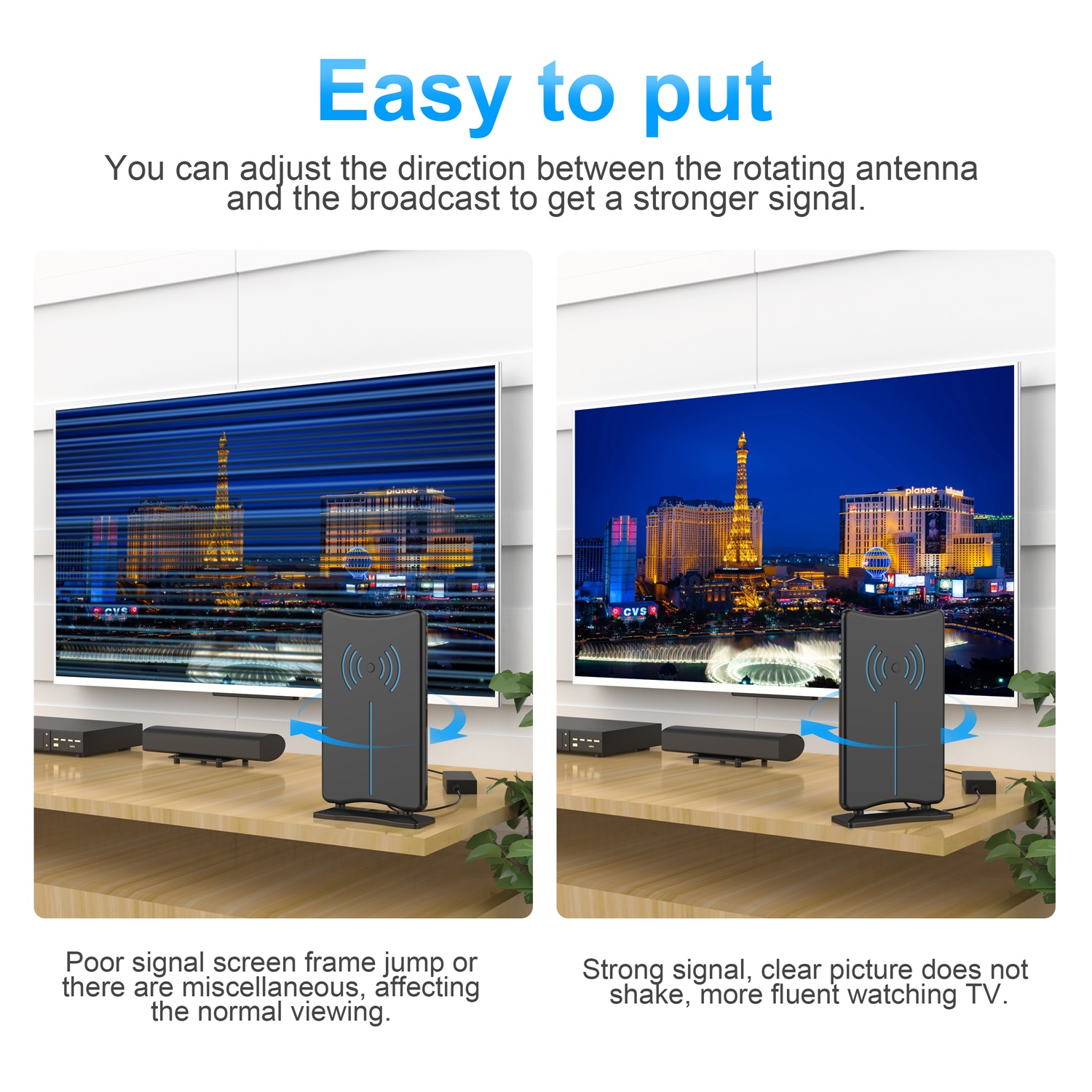 - ✅ Long Range Reception and Signal Controller – The newly developed signal receiving controller can switch modes quickly which is our unique technology. Built in 37dB amplified signal booster, can be placed almost anywhere in your Home. Digital antenna constantly scans new channels as they’re made available for broadcast. Please switch the amplifier to “short range” if your house is very close to the broadcast tower (within 35 Miles).